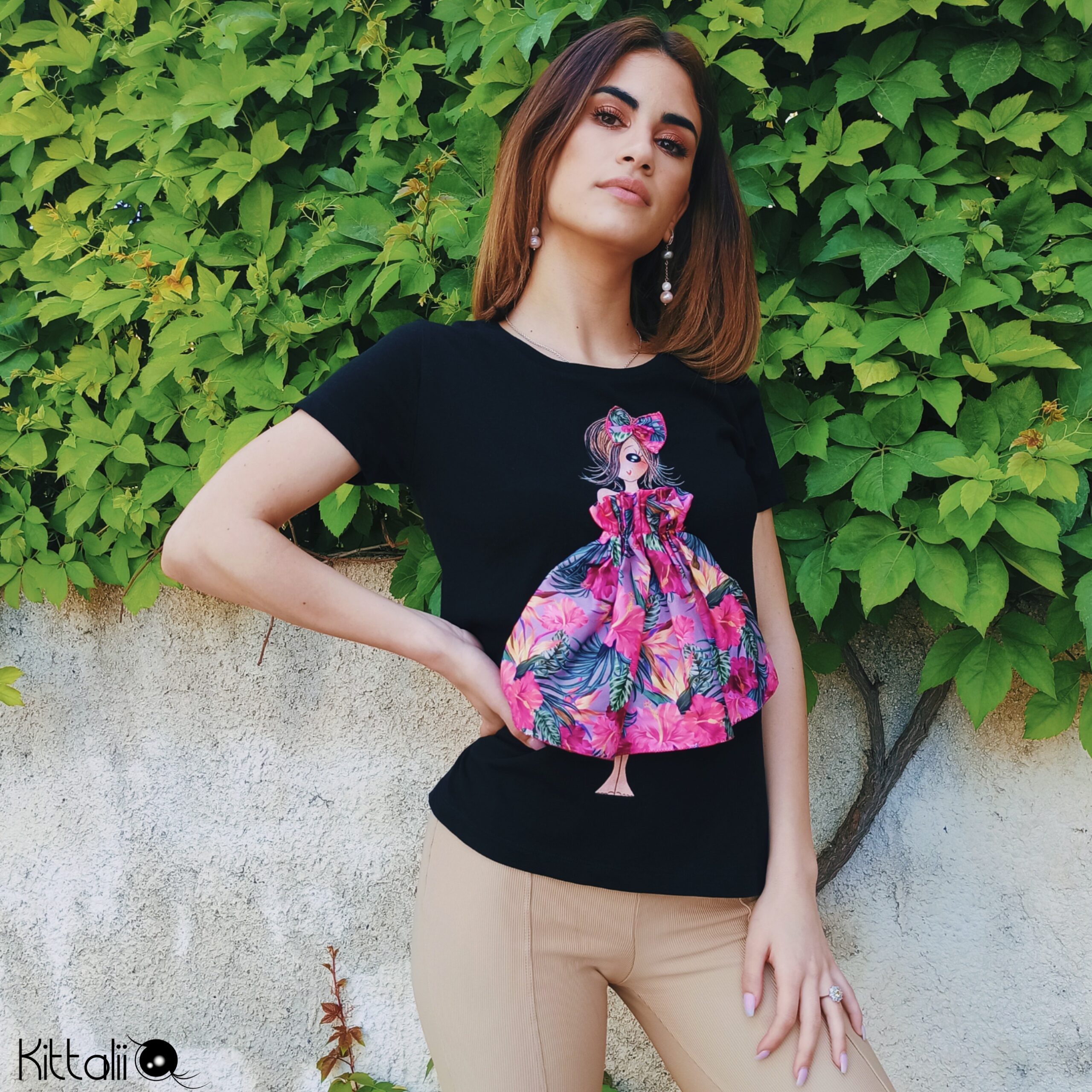 T-Shirt in cotone nero, vestibilità elegante e morbida al tatto.