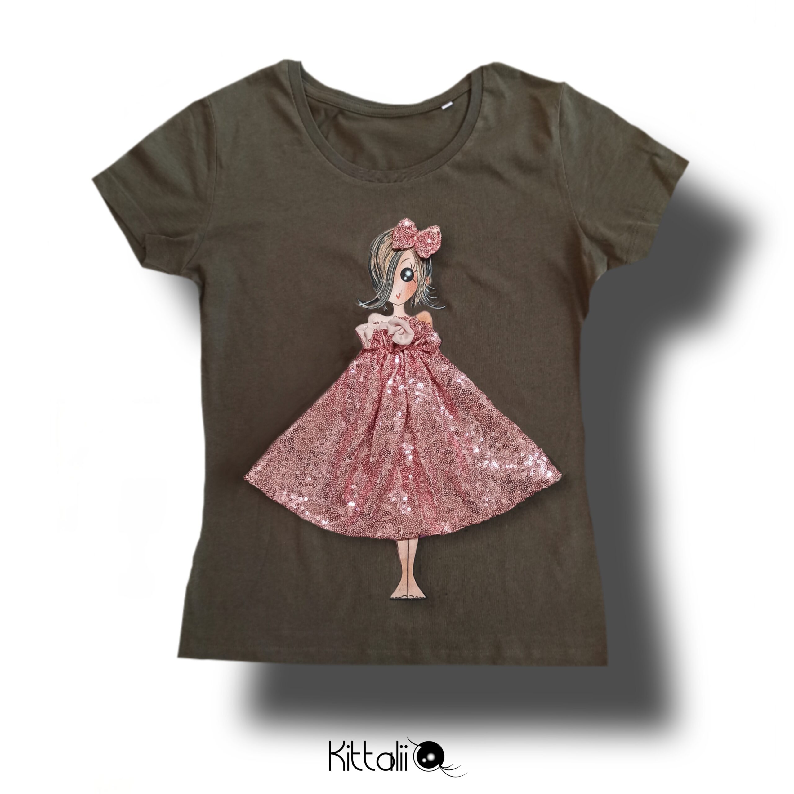 T-Shirt in cotone verde militare, vestibilità elegante e morbida al tatto.